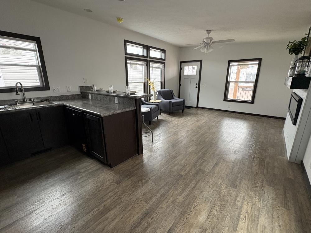 The Lakeside pairs a beautiful gray exterior with a modern interior to create an aesthetic getaway. Enjoy peaceful evenings on the covered porch, cozy up by the electric fireplace during the winter, and unwind in the rainfall walk-in shower. With durable LP siding built to handle the elements, this home is made for comfort in every season. Call us at 605-336-3276 for more information on this home!